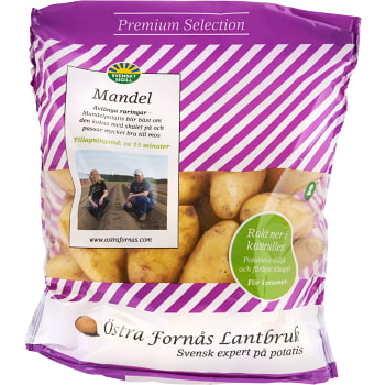 Avlånga raringar - Mandelpotatis blir som bäst om den kokas med skalet på och passar bra till mos. Förvaras mörkt och svalt, +4°C.